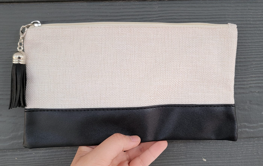 Sublimation Make-up Canvas purse with faux leather bottom and tassel